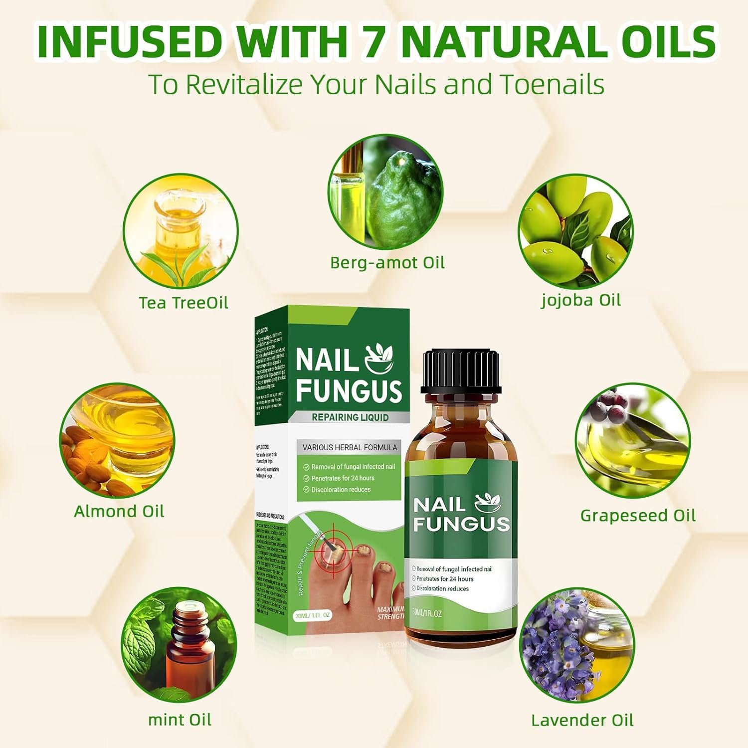 - NATURALLY PURE INGREDIENTS: Fungus Nail Treatment is known for its natural and pure ingredients. We offer you a pure, natural and effective treatment program. Six pure natural plant essential oils are used for extraction: peppermint oil, jojoba oil, grape seed oil, lavender oil, tea tree oil, almond oil.Choose natural ingredients for a healthier foot care.